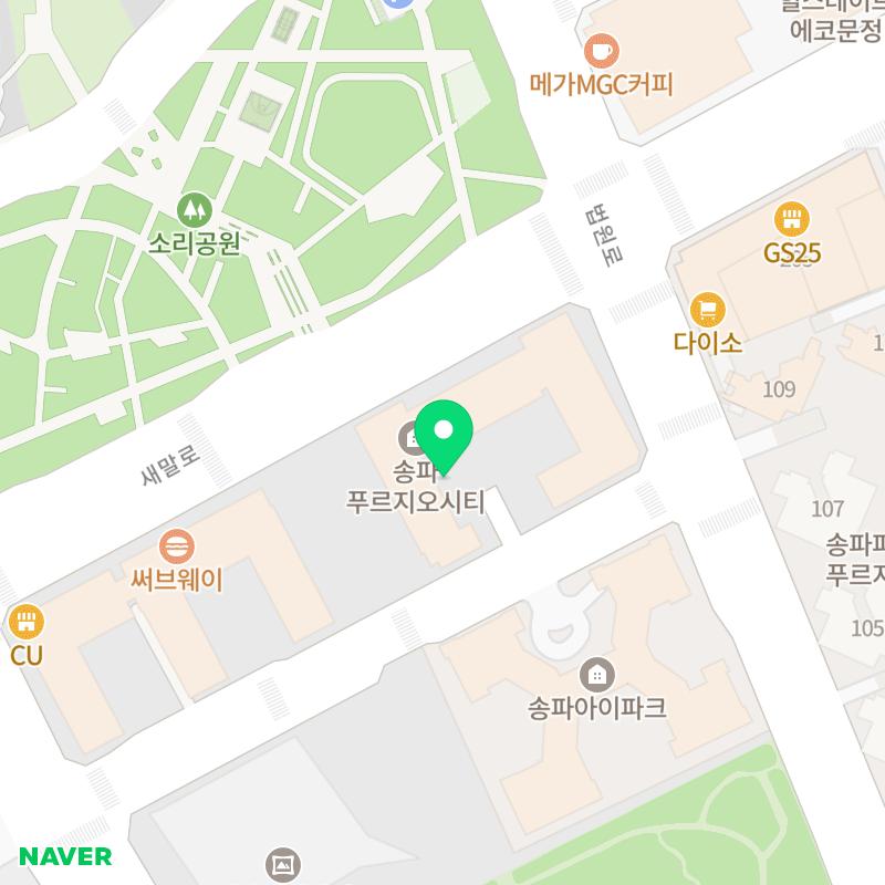 📍 주소: 서울특별시 송파구 새말로 62 송파 푸르지오시티 상가 지하1층 B120호