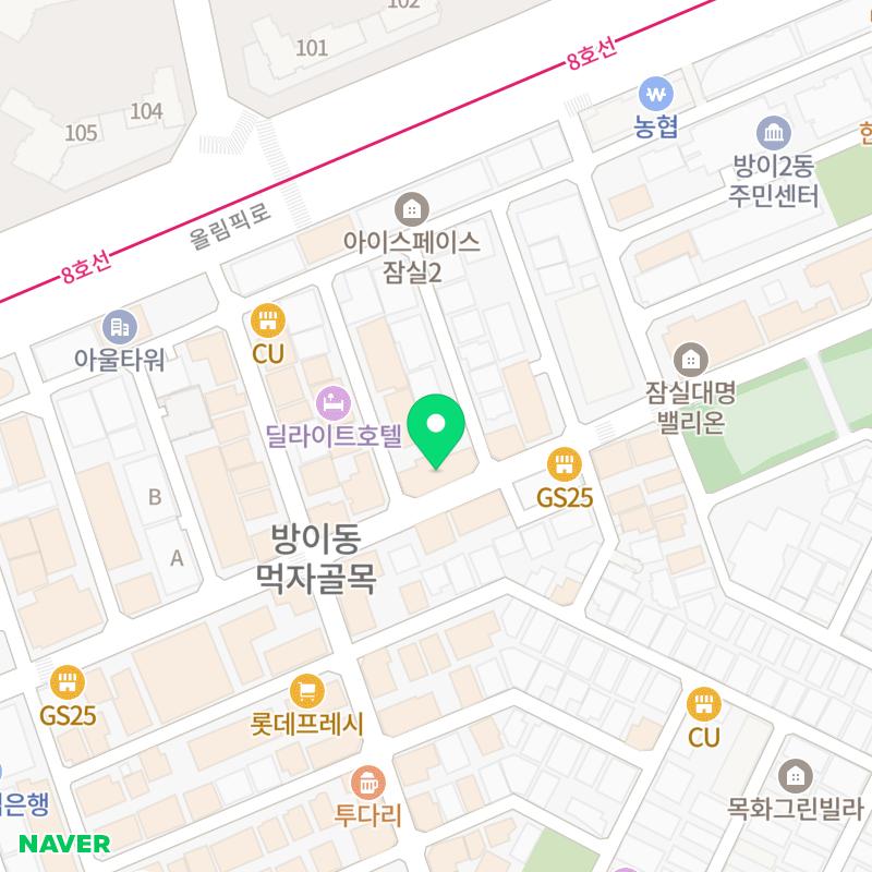 📍 주소: 서울특별시 송파구 올림픽로30길 9 2층 203호