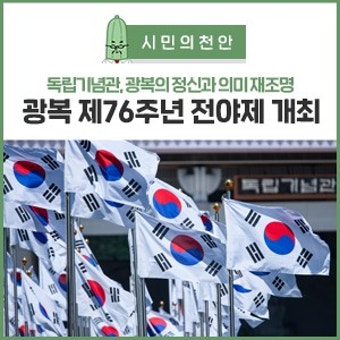 | 8월 7일 오후 8시 15분 | 국가보훈부/국회/광복회 주관 국회의사당 전야제 모바일 사전 입장권 예매 시작 (네이버 예매) | 국가보훈부, 대한민국 국회, 광복회 |