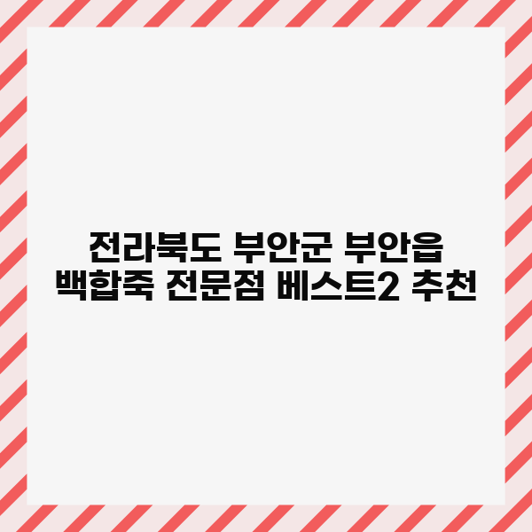 부안읍에서 잊지 못할 백합죽을 경험하고 싶으시다면, 아래 내용을 주목해 주세요. 기대 이상의 맛과 서비스가 여러분을 기다리고 있을 거랍니다!
